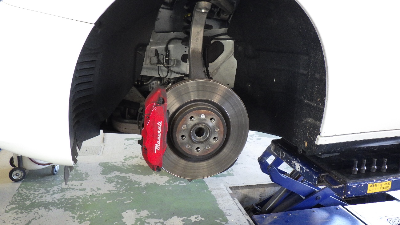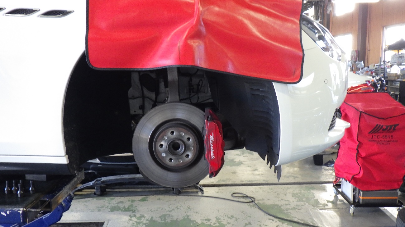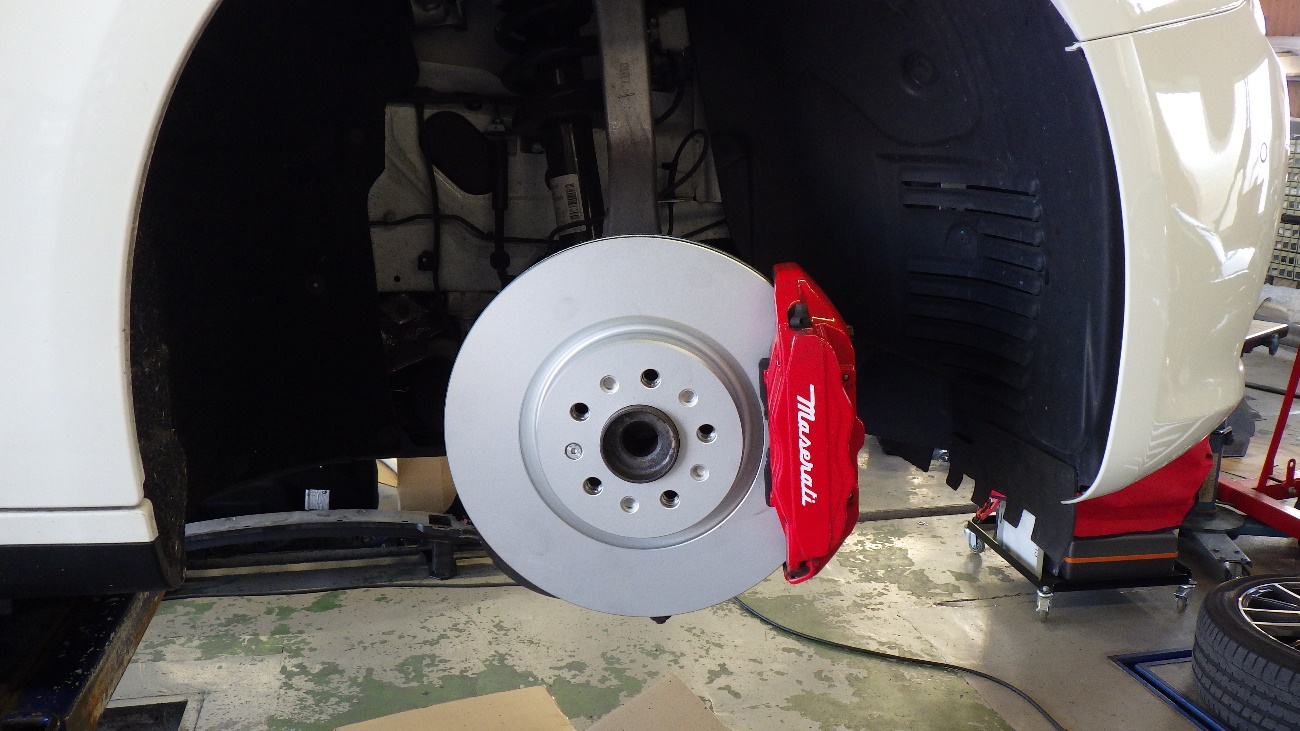 マセラッティ ギブリのフロントブレーキパッド及びディスクローター交換作業