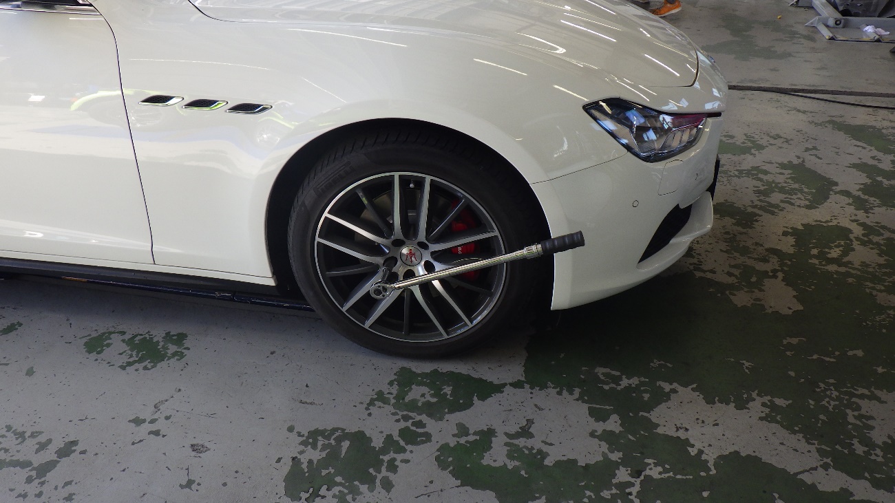 フロントホイールを規定トルクにて締め付けております。