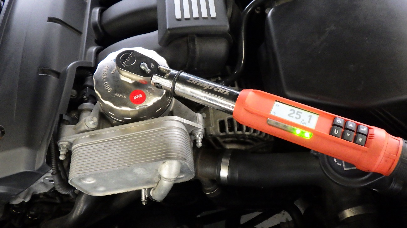 エンジンオイルフィルターケースを規定トルクにて締め付けております。