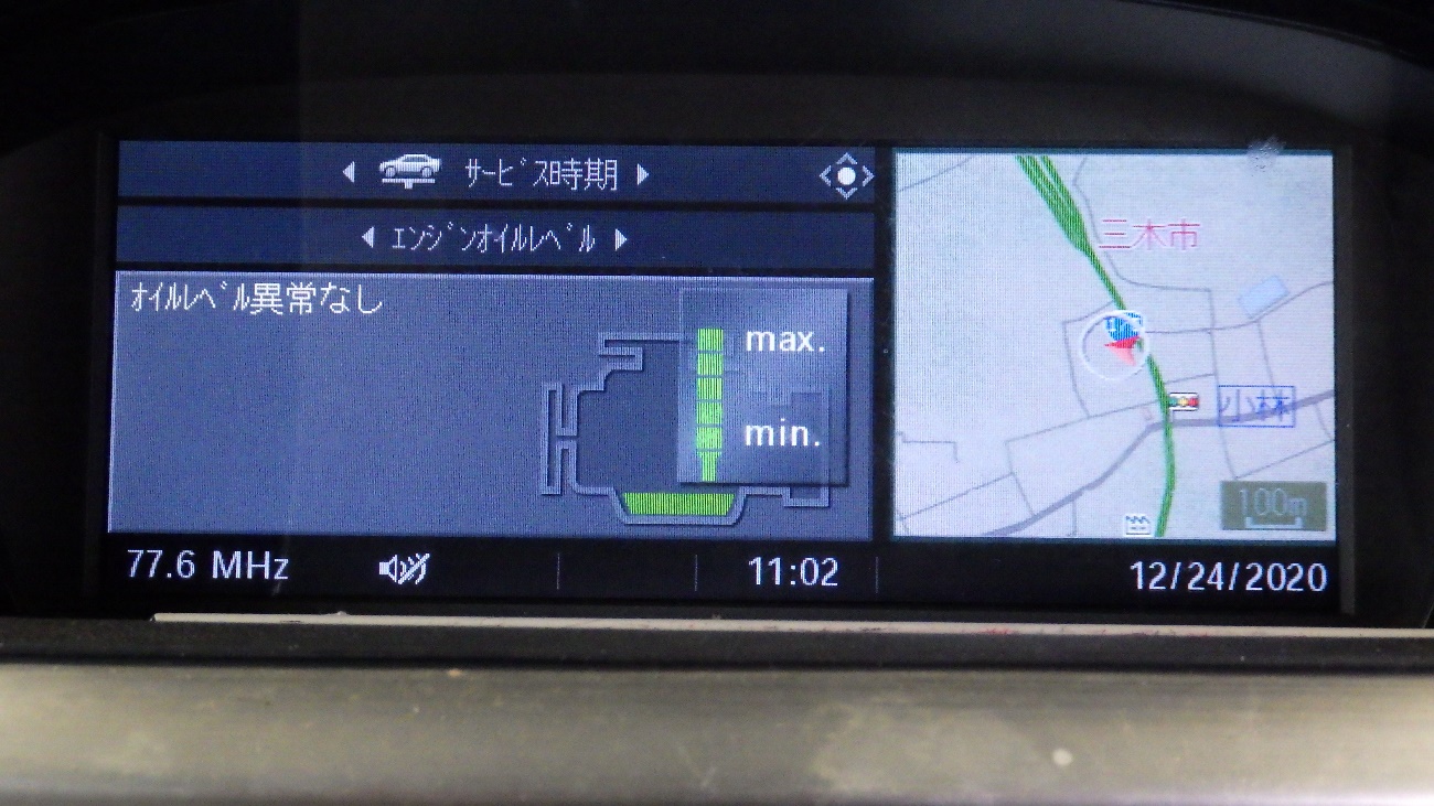 エンジンオイルを6リットル補充後モニターにてオイル量のチェックを実施。