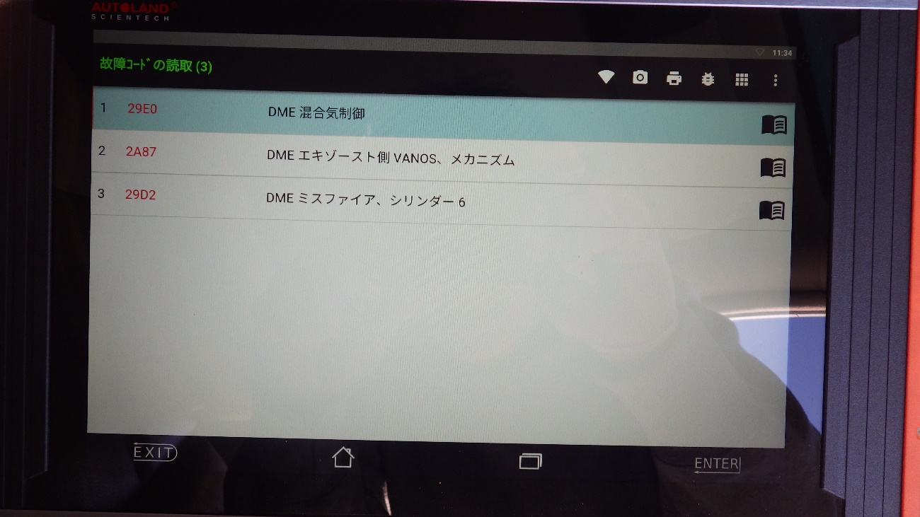 テスターで確認したところ、6番ミスファイア及びエキゾースト側VANOSにエラーが残っておりました。