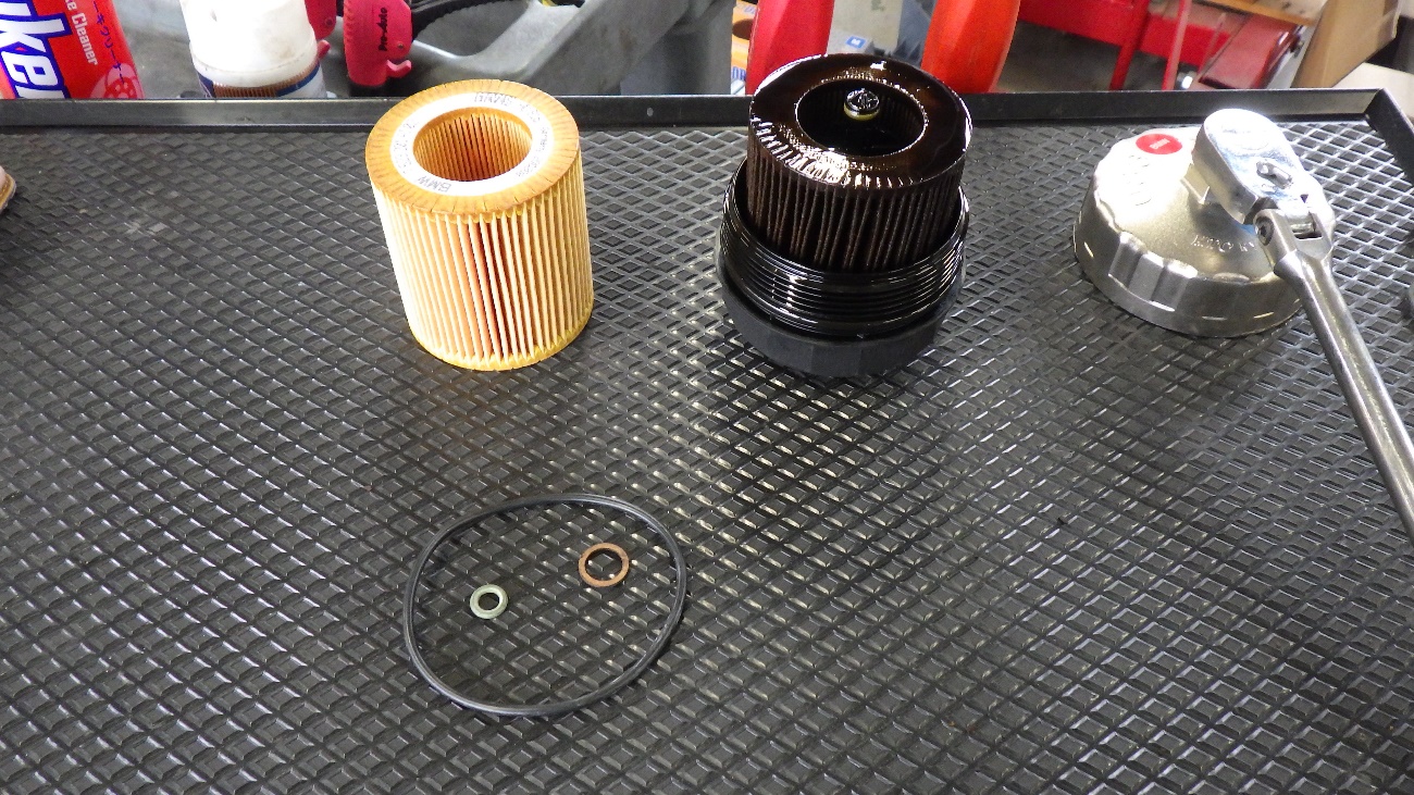 エンジンオイルフィルターの交換作業様子になります。