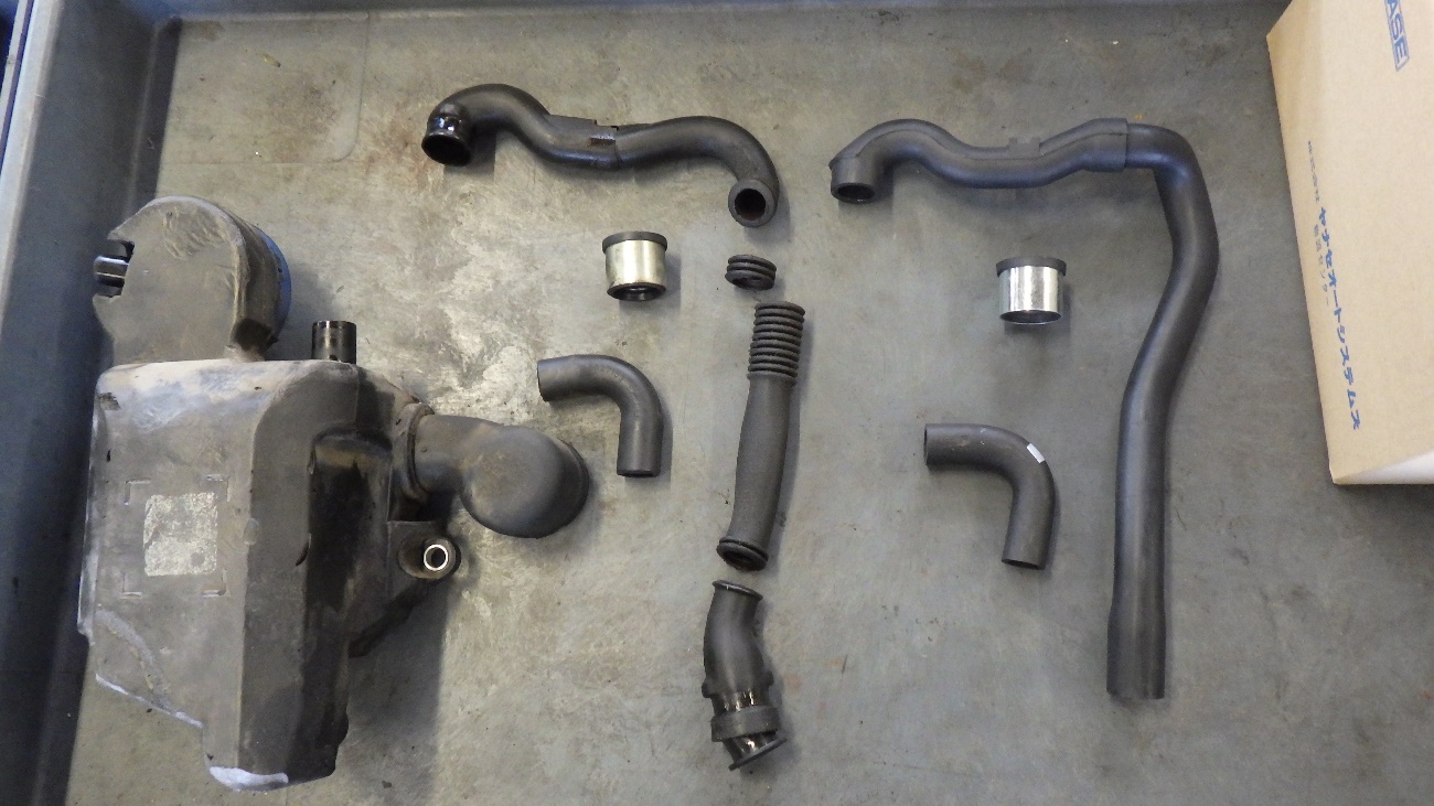 既存のオイルキャッチタンクになります。交換できるホース類は交換して参ります。