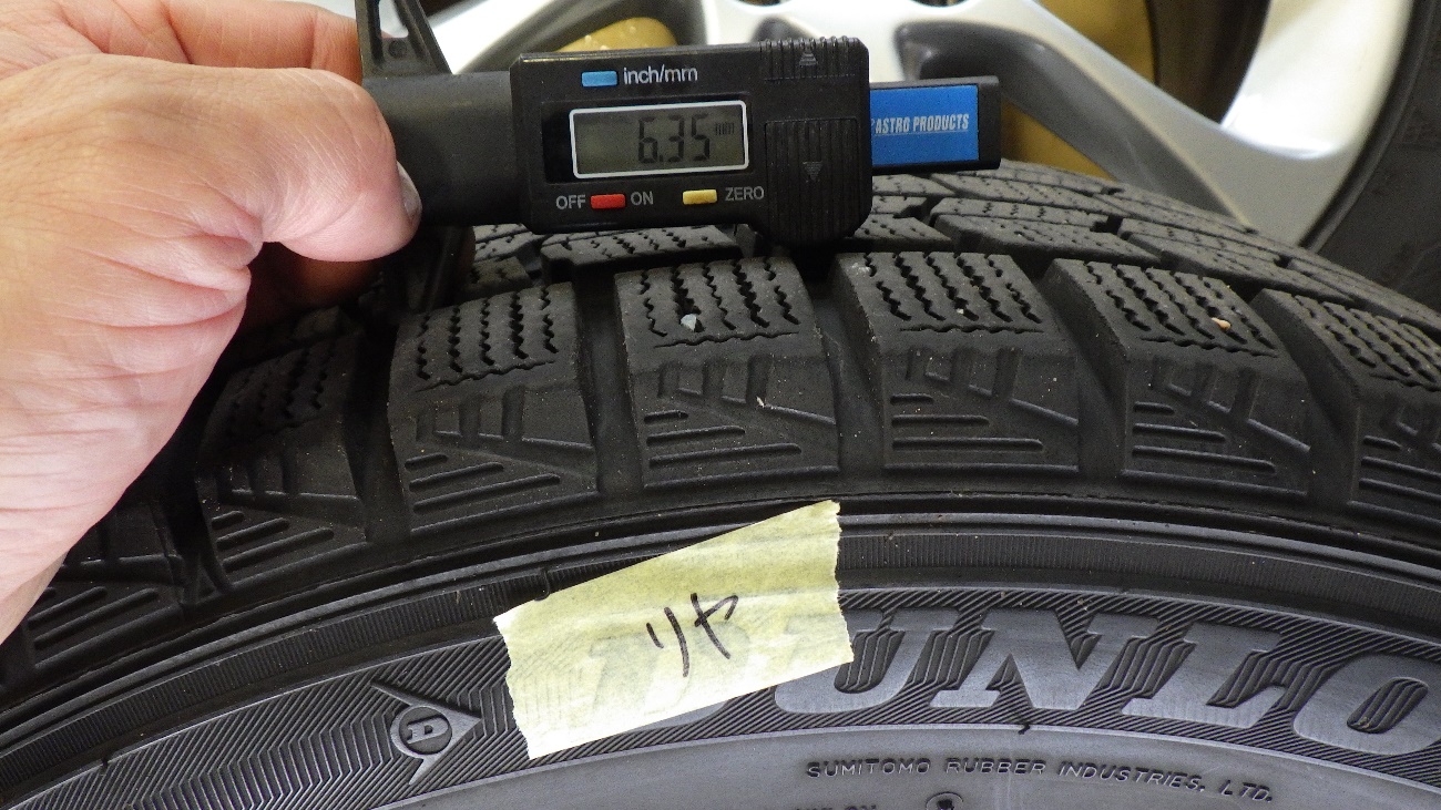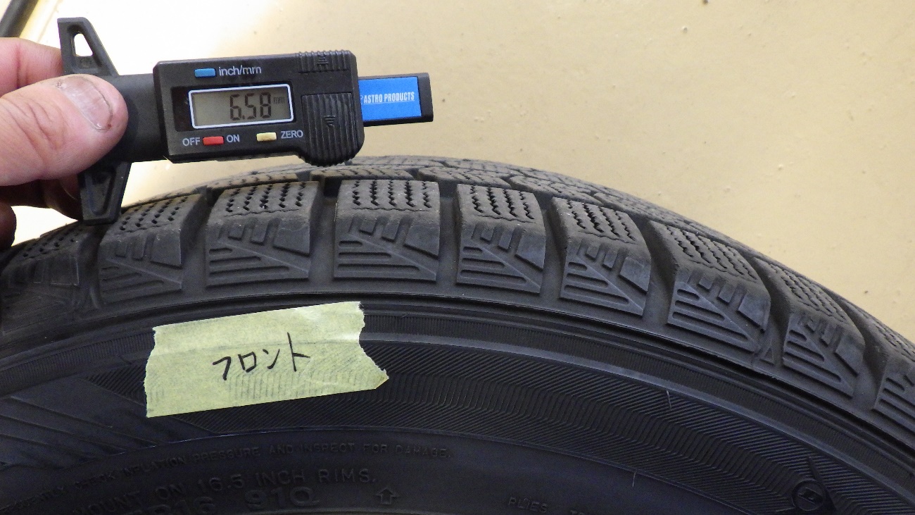 フロント部のタイヤ溝残量になります。スタッドレスタイヤで計測しております。
