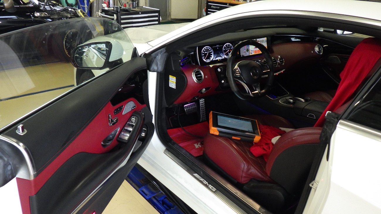 フロント足廻り損傷でのお預かりになります。 入庫後、入庫確認作業を行い、キズ、汚れ防止の為、ハンドルカバー、 シートカバーの取り付けを行いました。 入庫確認の後…