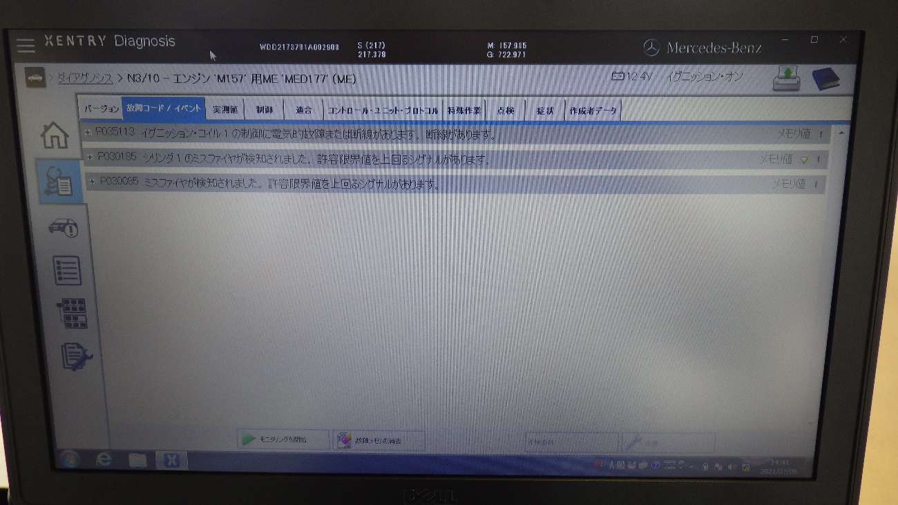 診断した結果、1番シリンダーにミスファイア表示がありました。