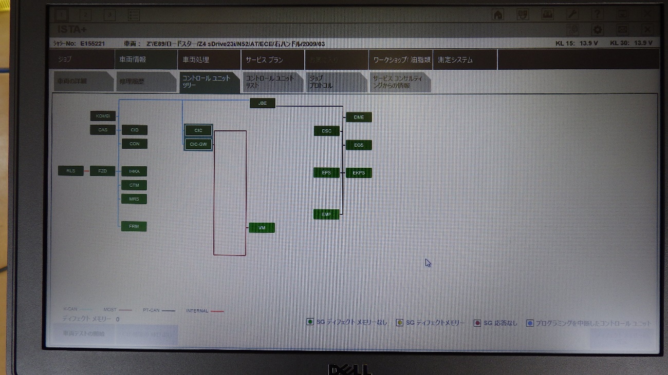 修理後専用テスターでエラーのチェック及びハードトップの初期化を実施。