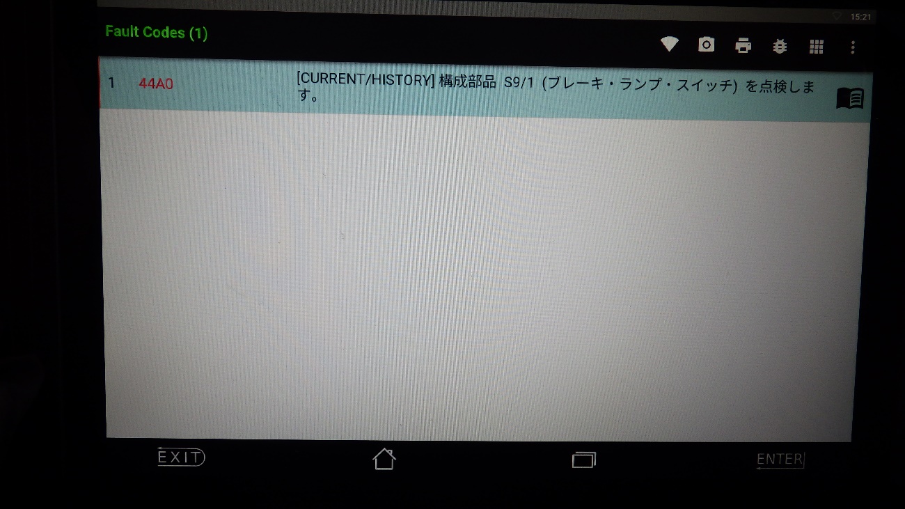 テスターで診断した結果、ブレーキスイッチにエラーが入力表示。