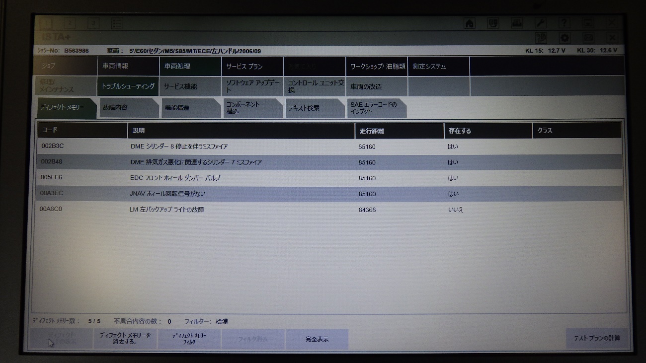入庫の時からエンジン不調が見受けられました。テスターで診断して参ります。