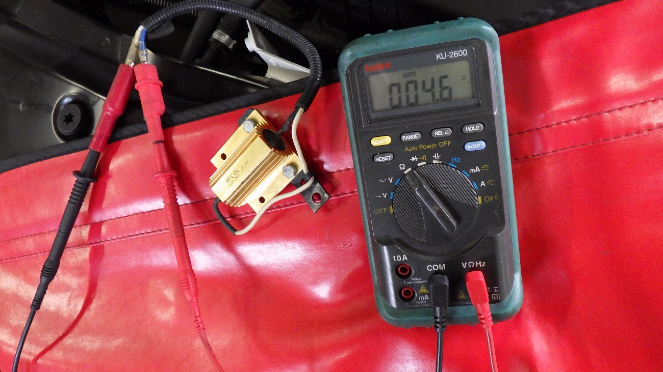 配線修理後に抵抗値を測定。基準値より若干上がっている状態でした。