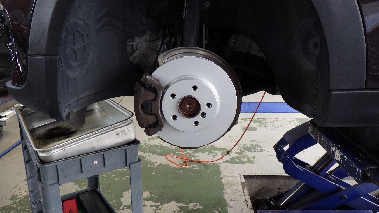 フロントディスクローターの交換作業を行って参ります。