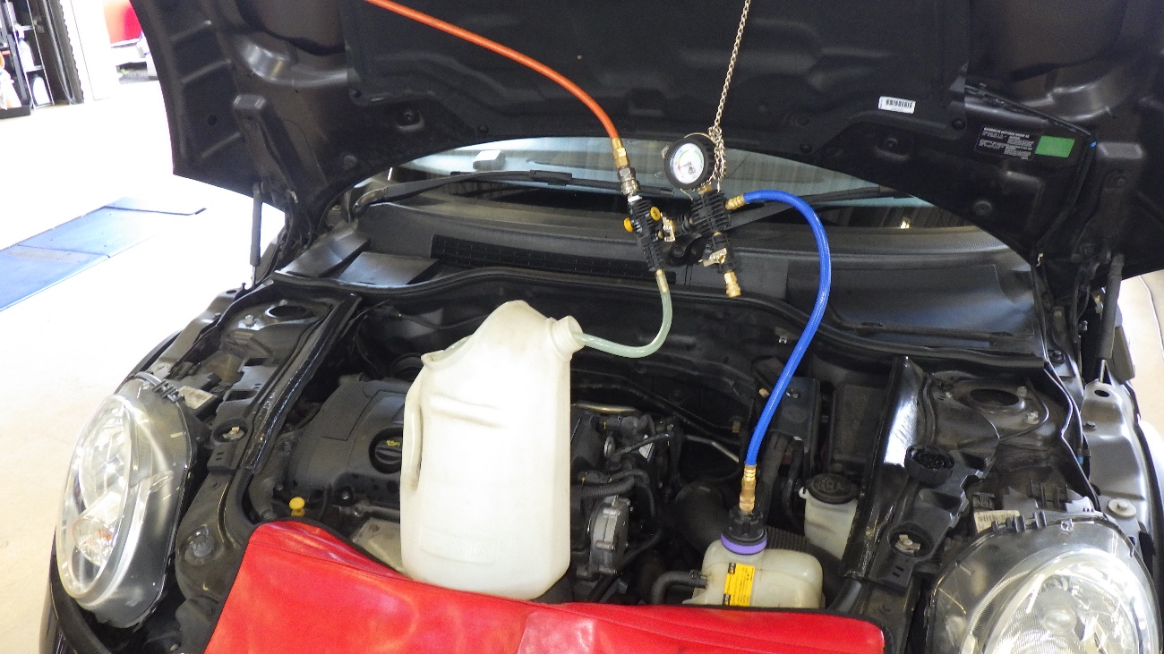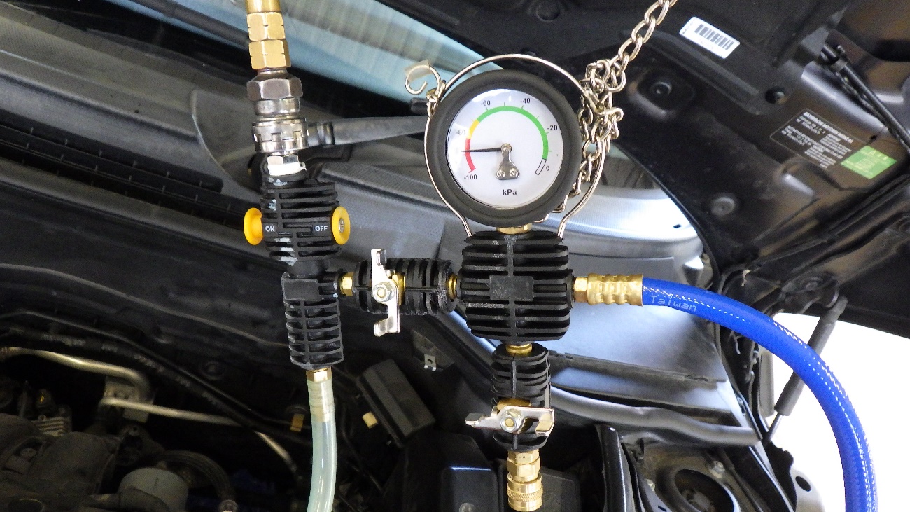 同時にLLC漏れもチェックしております。負圧を発生させ、漏れている箇所が無いか点検を行っております。