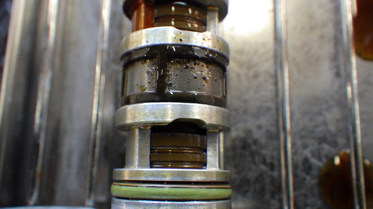 取り外した結果、スラッジが付着しており、目詰まりを起こしてましたので