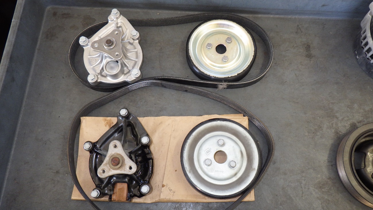 取り外したウォーターポンプ一式と、新しいウォーターポンプになります。