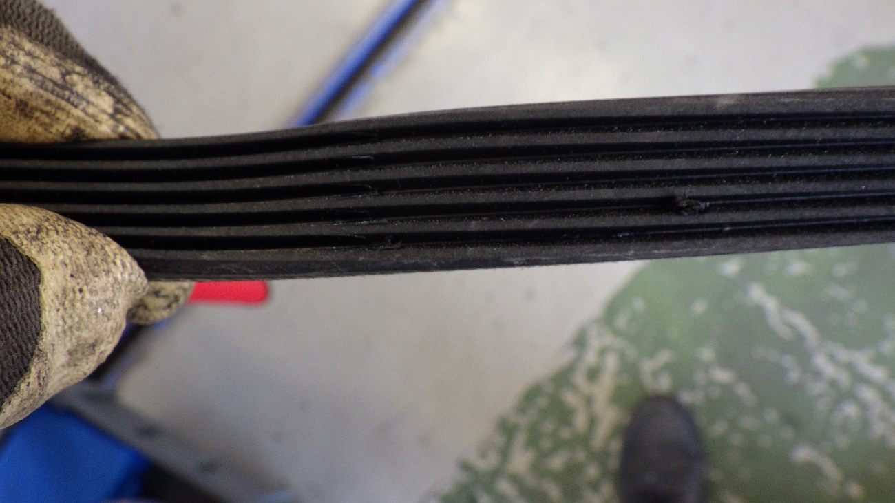 ドライブベルトの裏側になります。写真では見えづらいですが、ベルトがスリップ