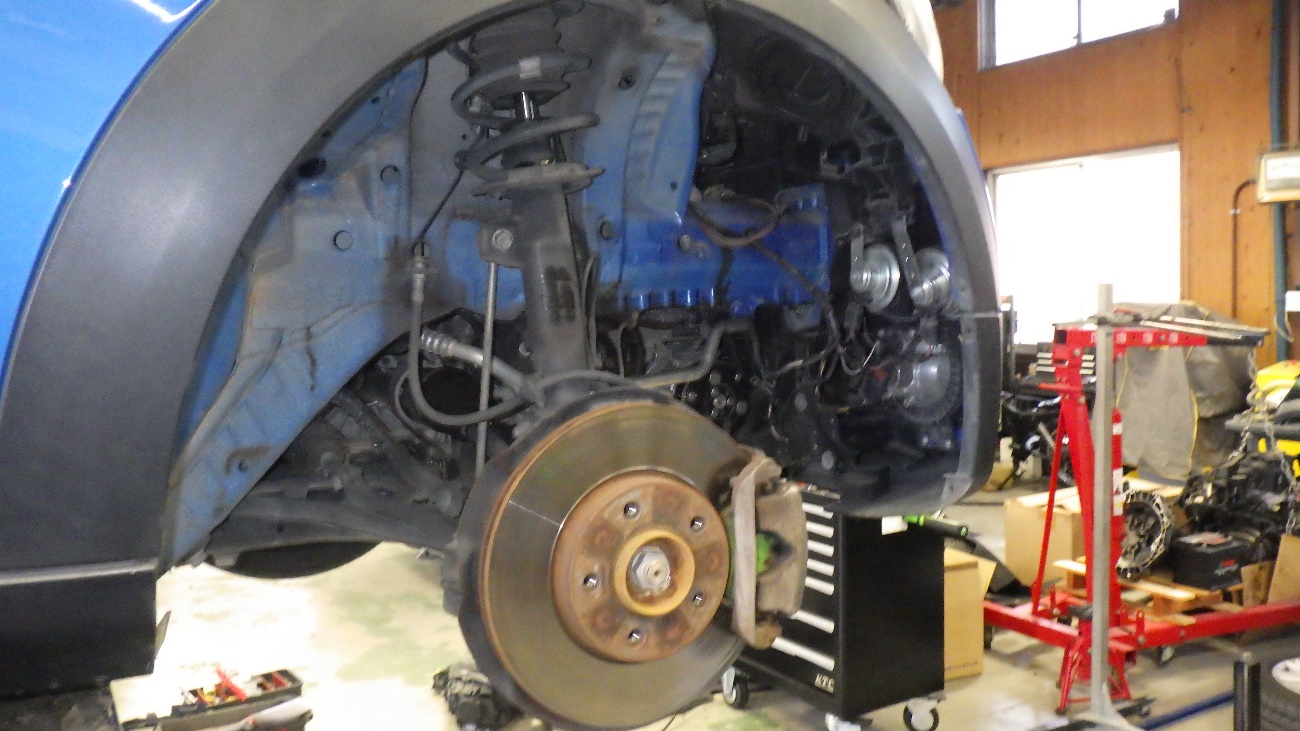 タイヤハウスを取り外してベルト周辺を点検したところ、オルタネーターが完全に固着