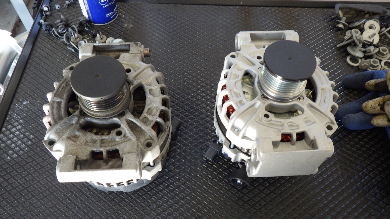 既存のオルタネーターと、新しいオルタネーターの様子になります。