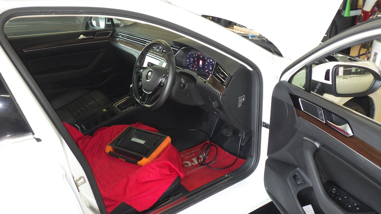 右フロント廻り損傷でのお預かりになります。 まず初めに、ホイールへの損傷があったので、足廻りの計測作業を行いました。 足廻りの計測を行ない、数値に問題が無い事を…