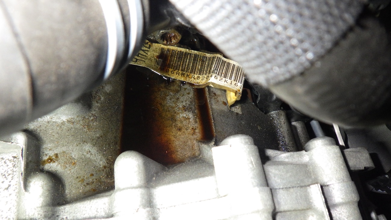 ちょうど中央の、ミッションケース上部付近にLLCが溜まっておりました。