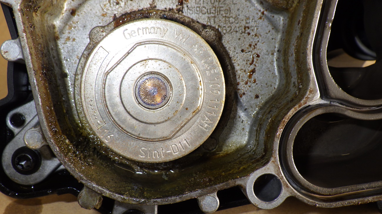 既存のウォーターポンプASSYになります。軸の部分よりLLCが漏れている様子が見受けられます。