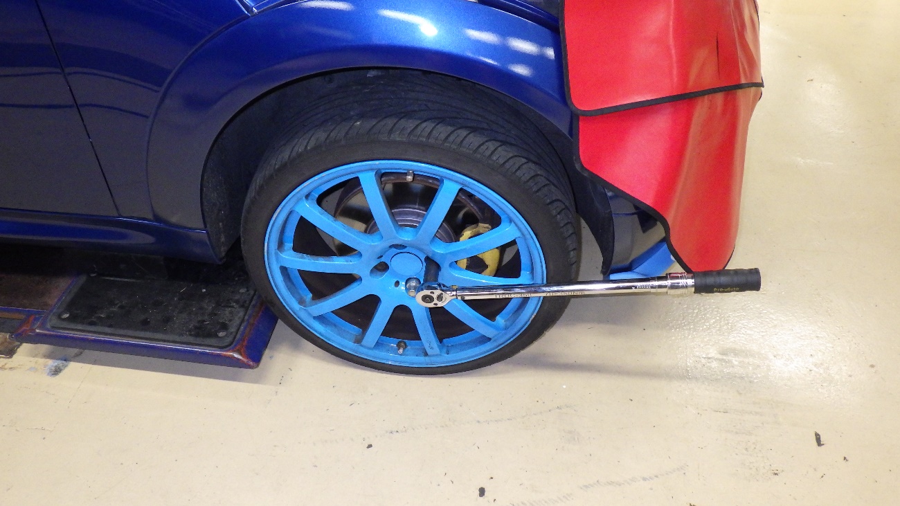 組付け完了後、右ホイールを外したので、規定トルクにて締め付けております。