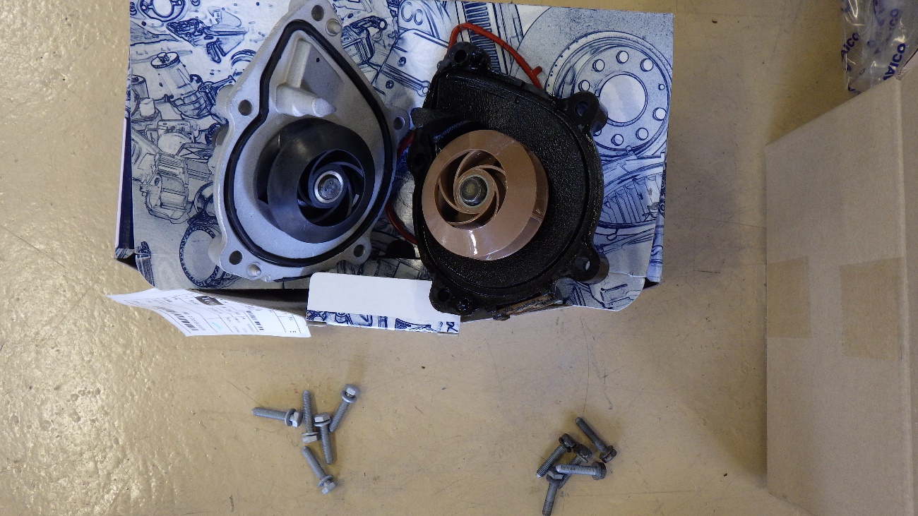 取り外したウォーターポンプと新しいウォーターポンプになります。