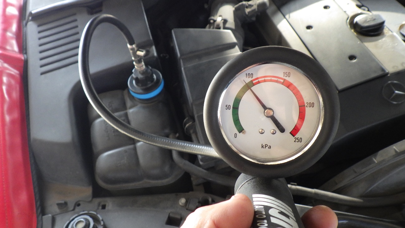 LLC加圧テストの結果、エンジンルーム~室内のヒーターのジョイントホースの