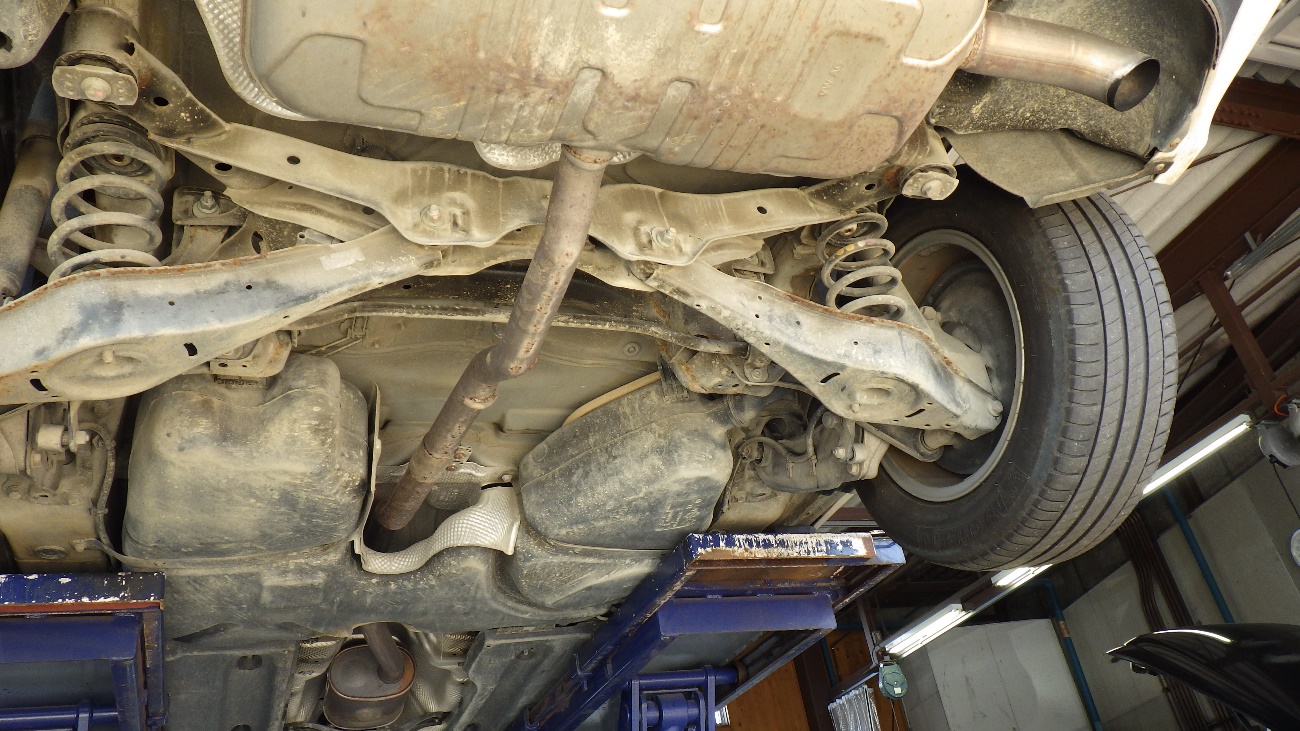 右フロント廻り損傷でのお預かりになります。 まず初めに、ホイールへの損傷があったので、足廻りの計測作業を行いました。 足廻りの計測を行ない、数値に問題が無い事を…