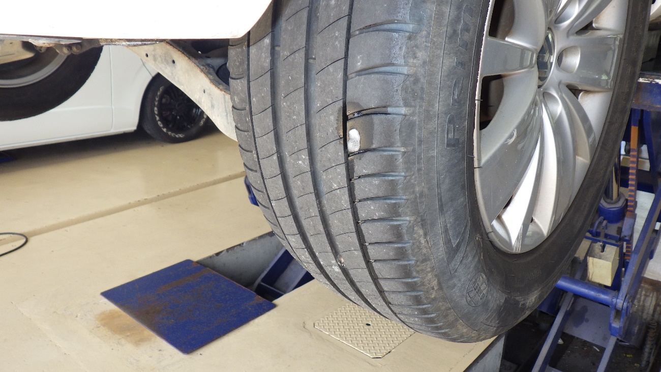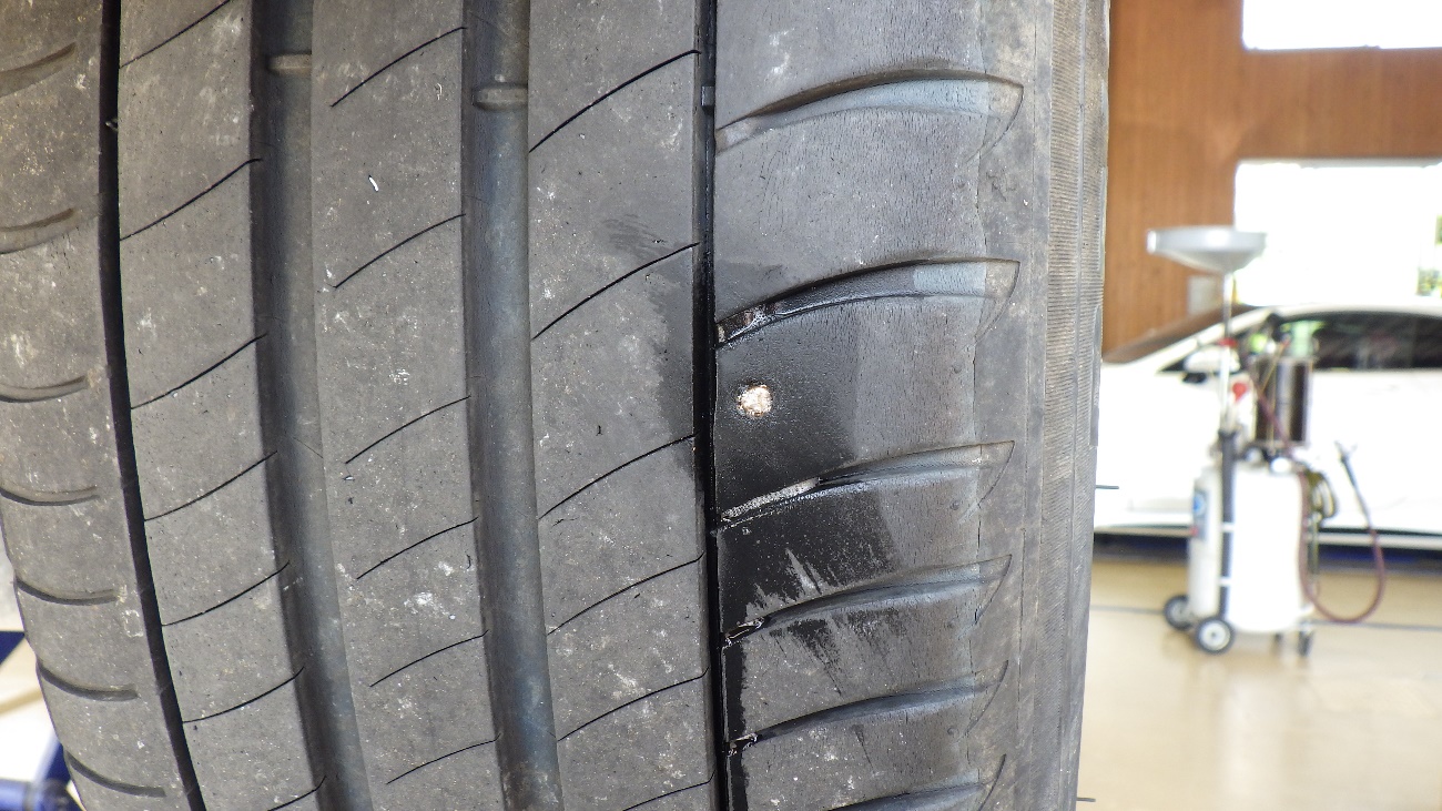 同時に右リヤのタイヤに釘が刺さっておりました。