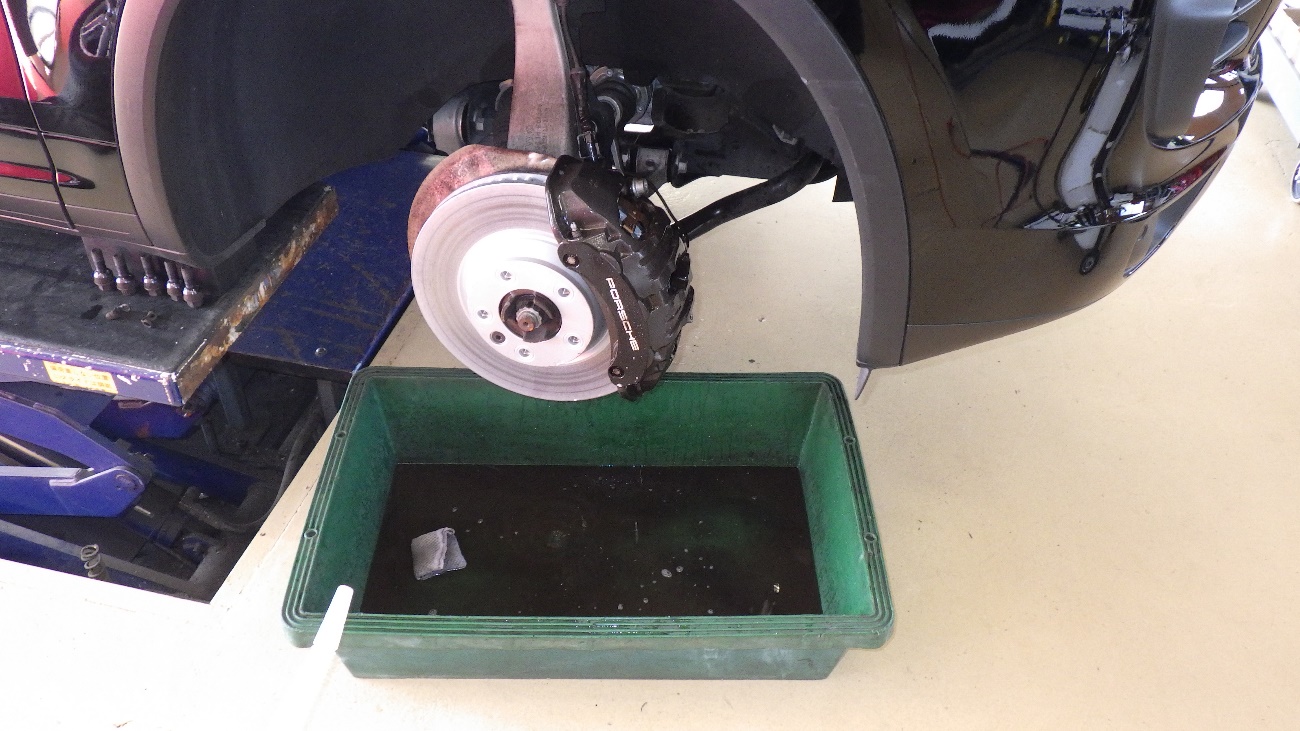 ブレーキオイルの交換後、キャリパーの塗装にダメージがあるのと、