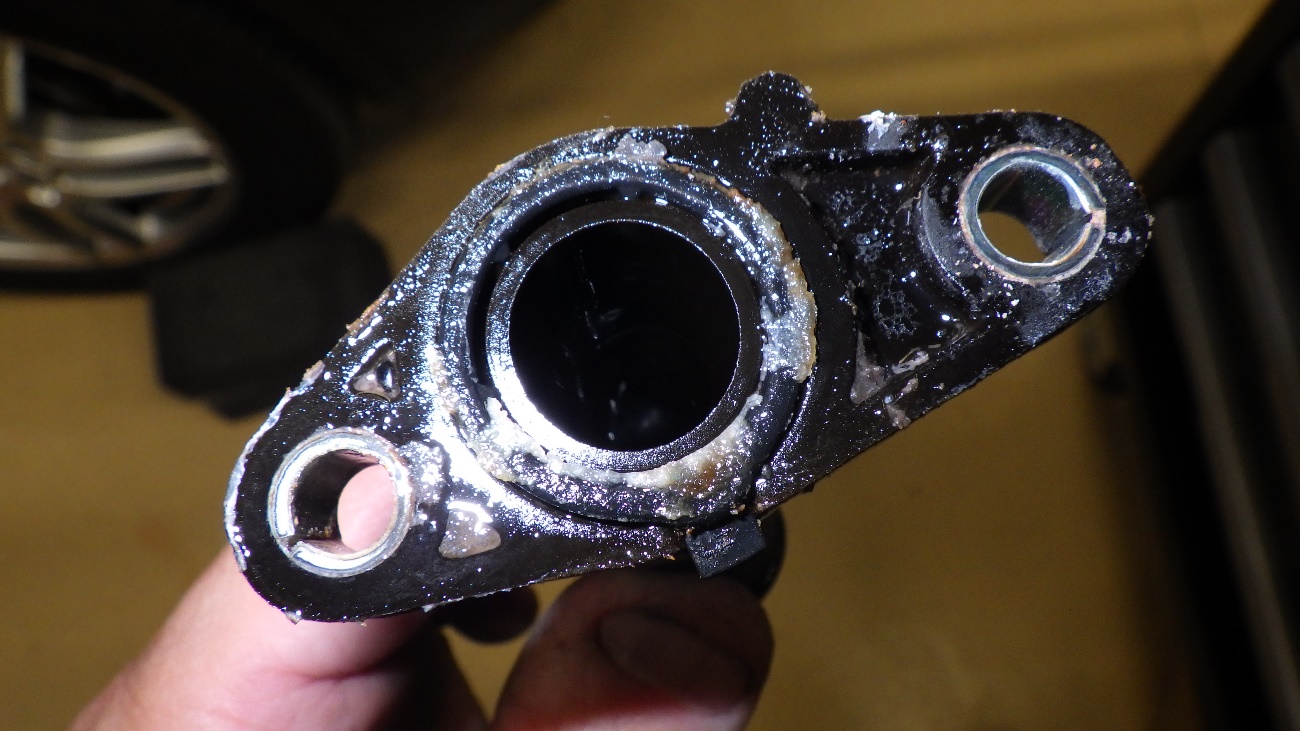 加圧テストの結果、エンジン上部のウォーターラインのプラスチック部よりLLCが漏れている跡がありました。
