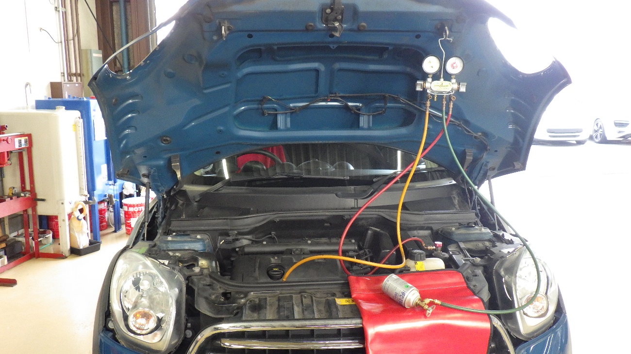 エアコンガスを規定量に調整を行い、エアコンの作動テスト実施。