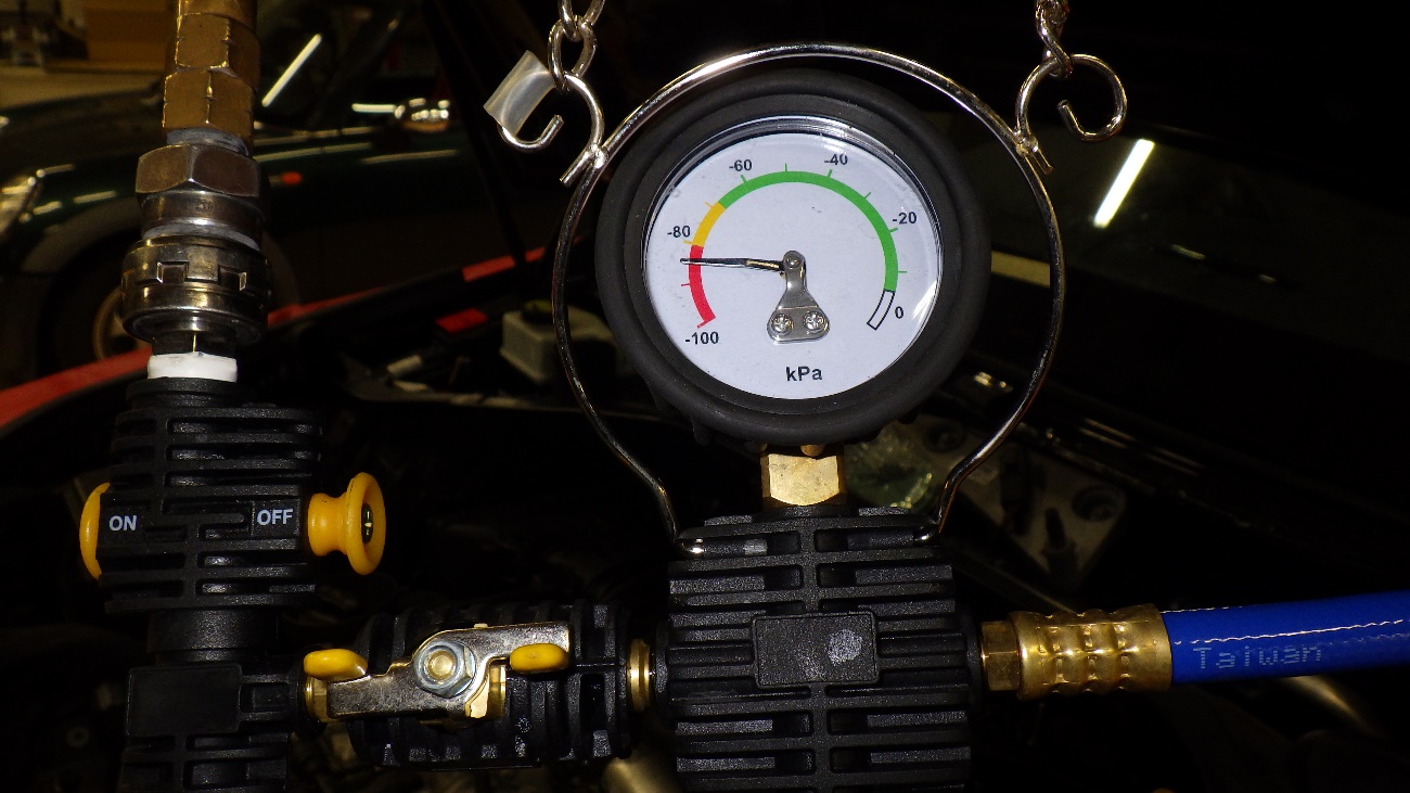 真空状態になります。漏れ等も無い事を確認してからエア抜きを行っております。