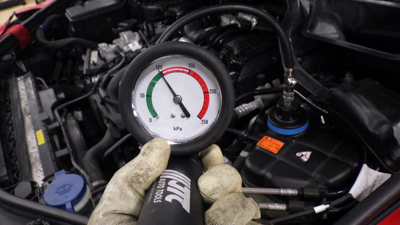 クーラント充填後、加圧テストを実施。こちらも同様クーラント漏れが