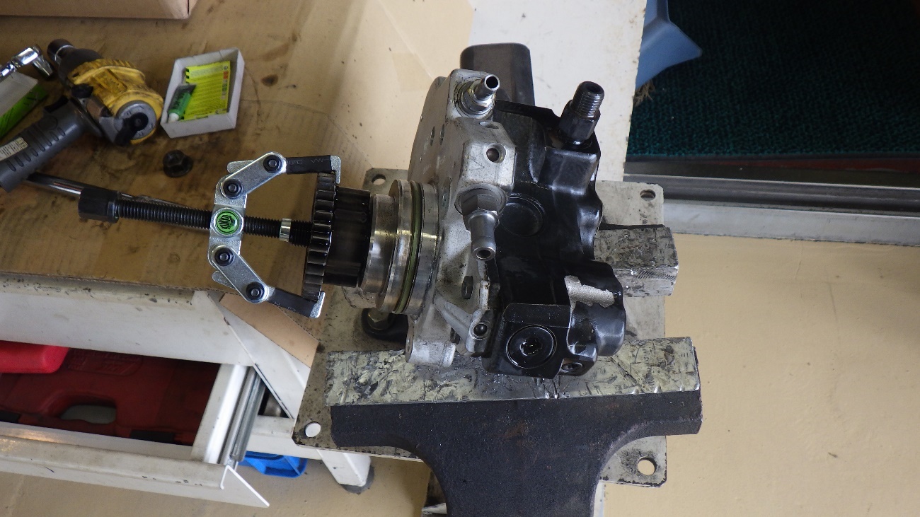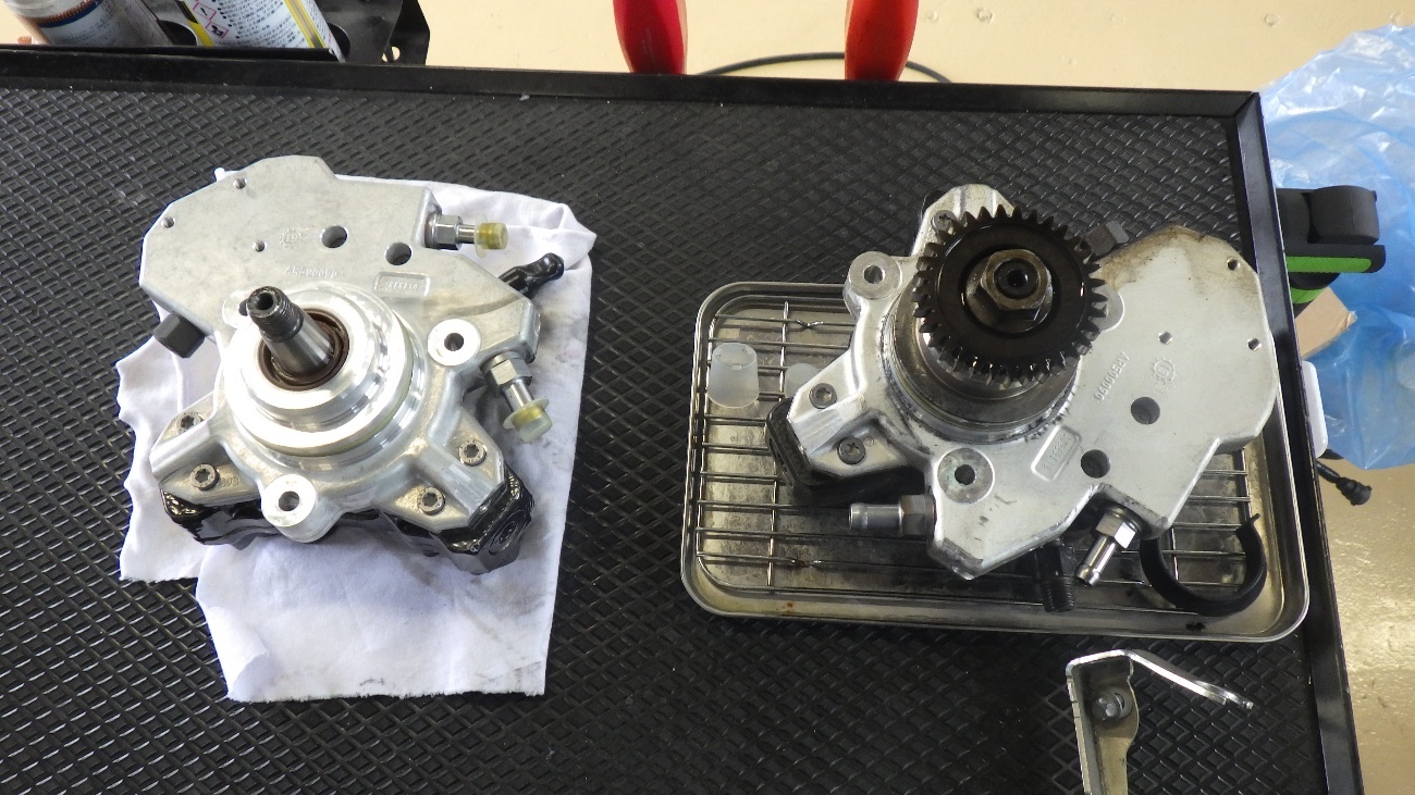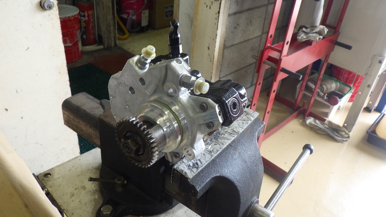 取り外したギアを新しい高圧ポンプに組付けた状態になります。