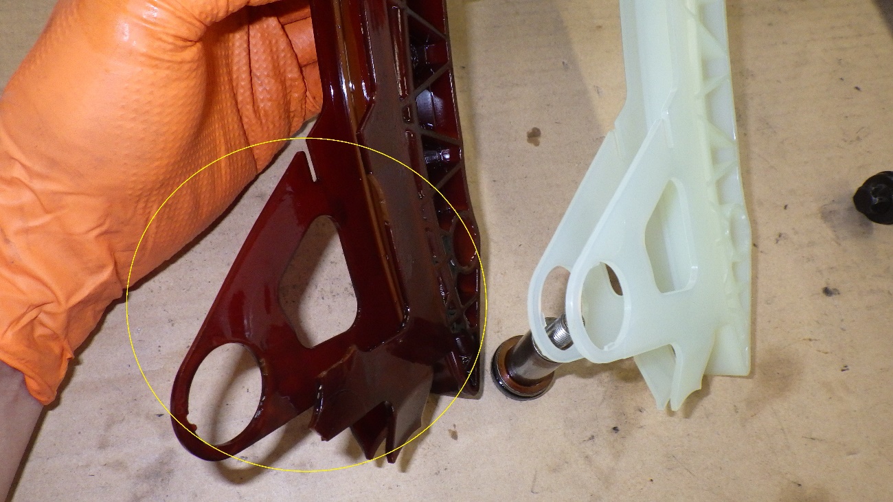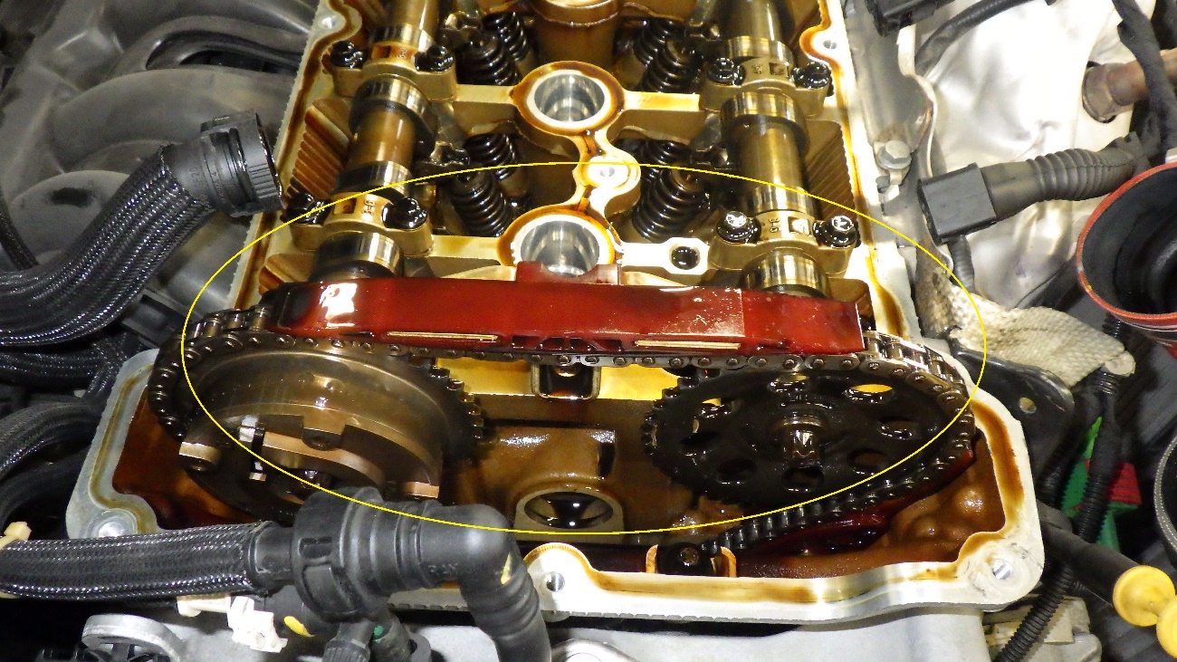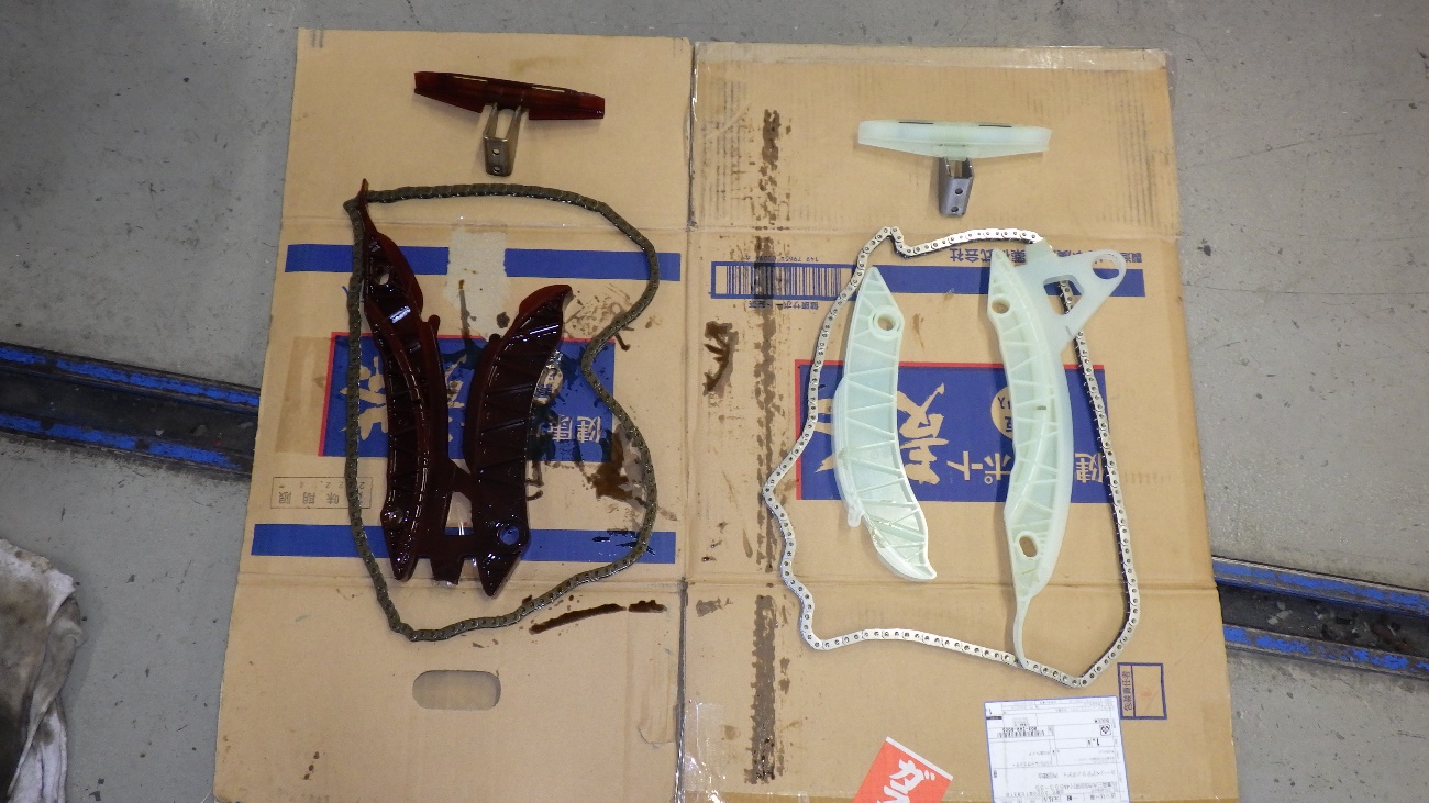 タイミングチェーンガイドレールが破損して、その影響でタイミングチェーンが