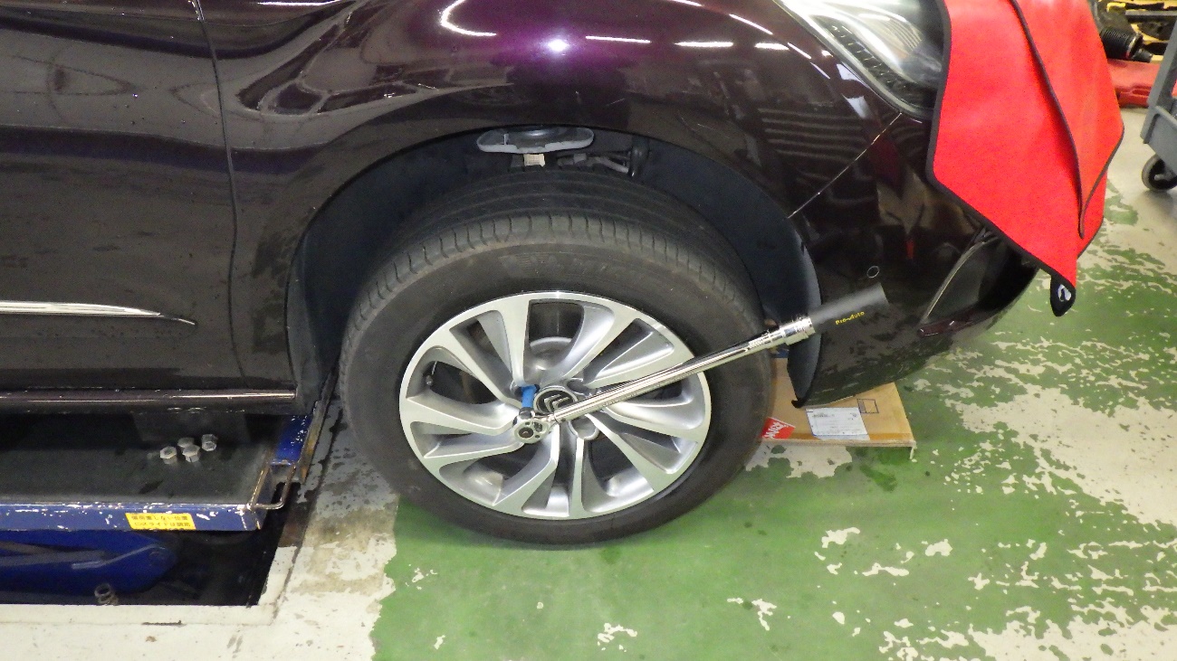 右フロントホイールも取り外しておりますので、規定トルクにて締め付けております。
