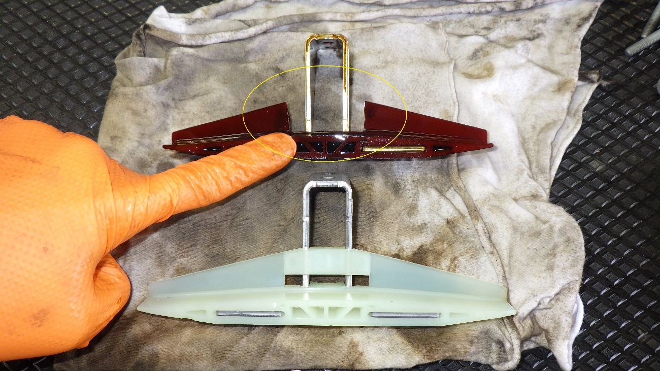 このガイドレールのプラスチック部が破損して完全に無くなっておりました。