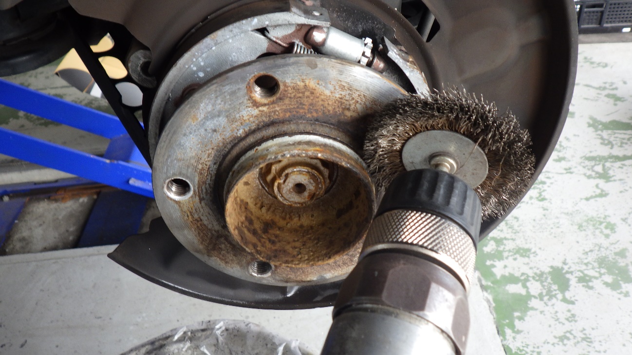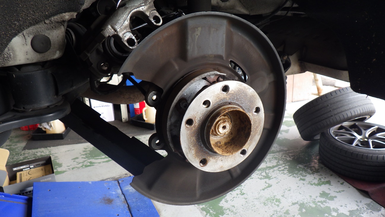 すでにセンサーがディスクローターに接触し摩耗しておりました。