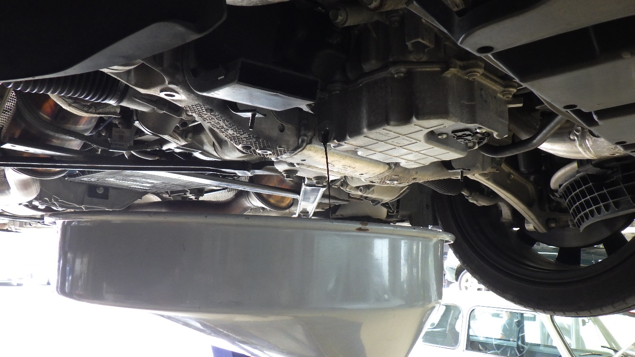 リフトアップを行いご用命のエンジンオイル交換作業に取り掛かって参ります。