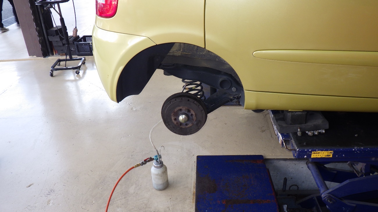 リヤ側のブレーキオイルの交換様子になります。
