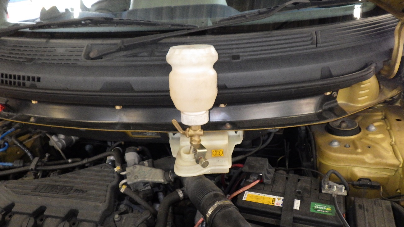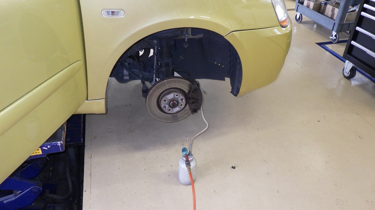フロント側のブレーキオイルの交換作業様子になります。