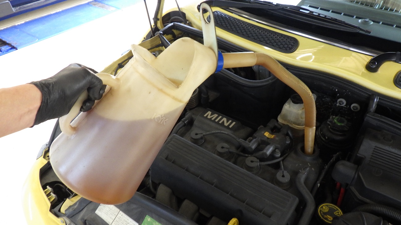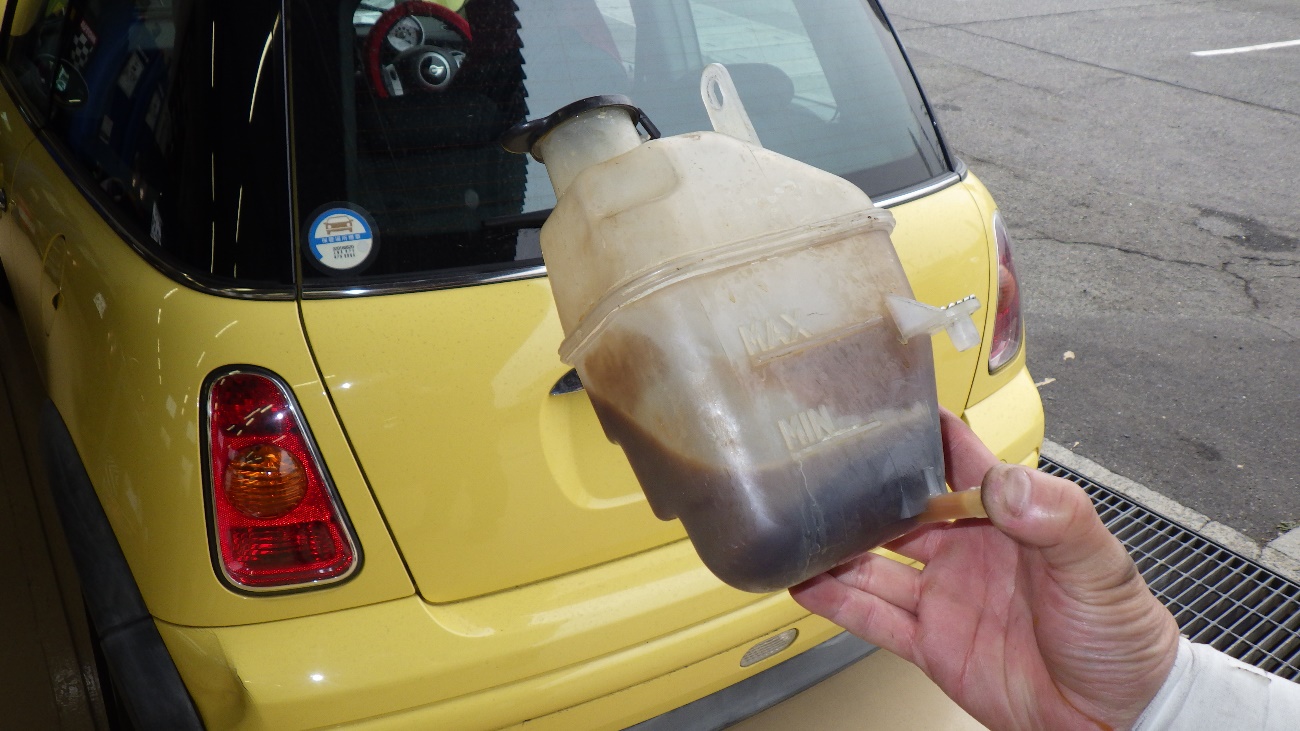 茶色に濁っておりました。新しいクーラントを入れる前に掃除も行って参ります。
