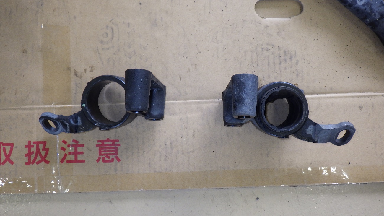 ロアアームブッシュの交換様子になります。完全にゴムがちぎれておりました。