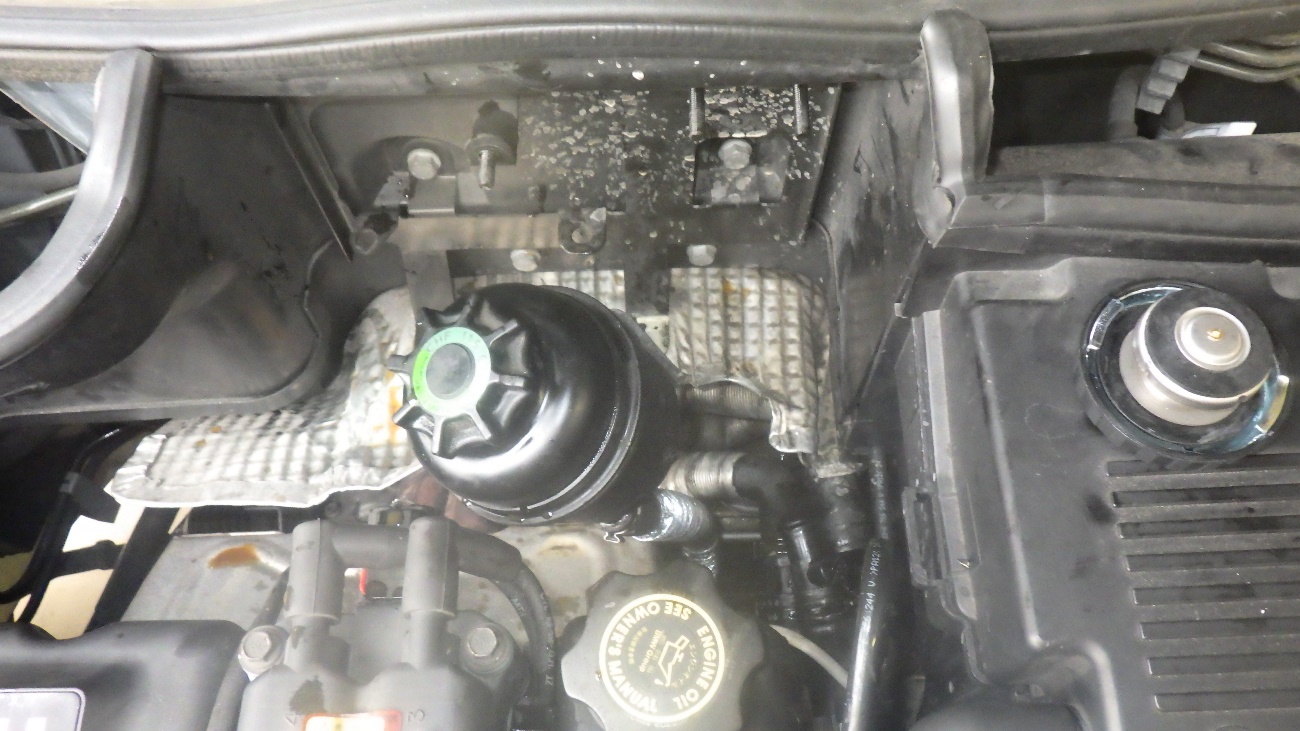 下廻りを点検した結果、パワステのリターンホースからオイルが漏れておりました。