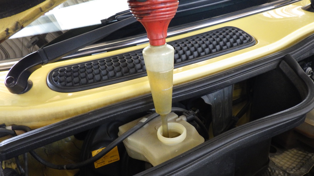 ブレーキオイルを交換させていただきます。タンク内のオイルも排出して