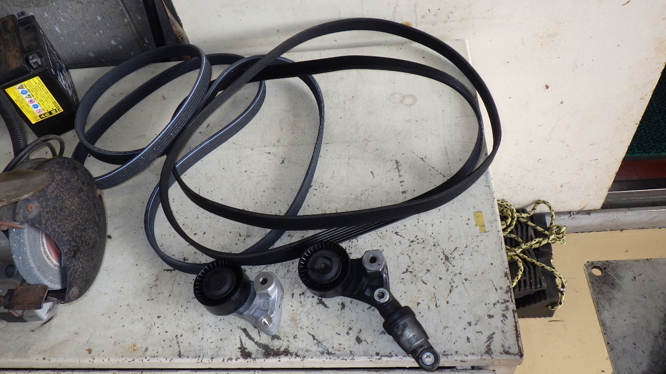同時並行で、ドライブベルト、ベルトテンショナーも交換させて頂きます。