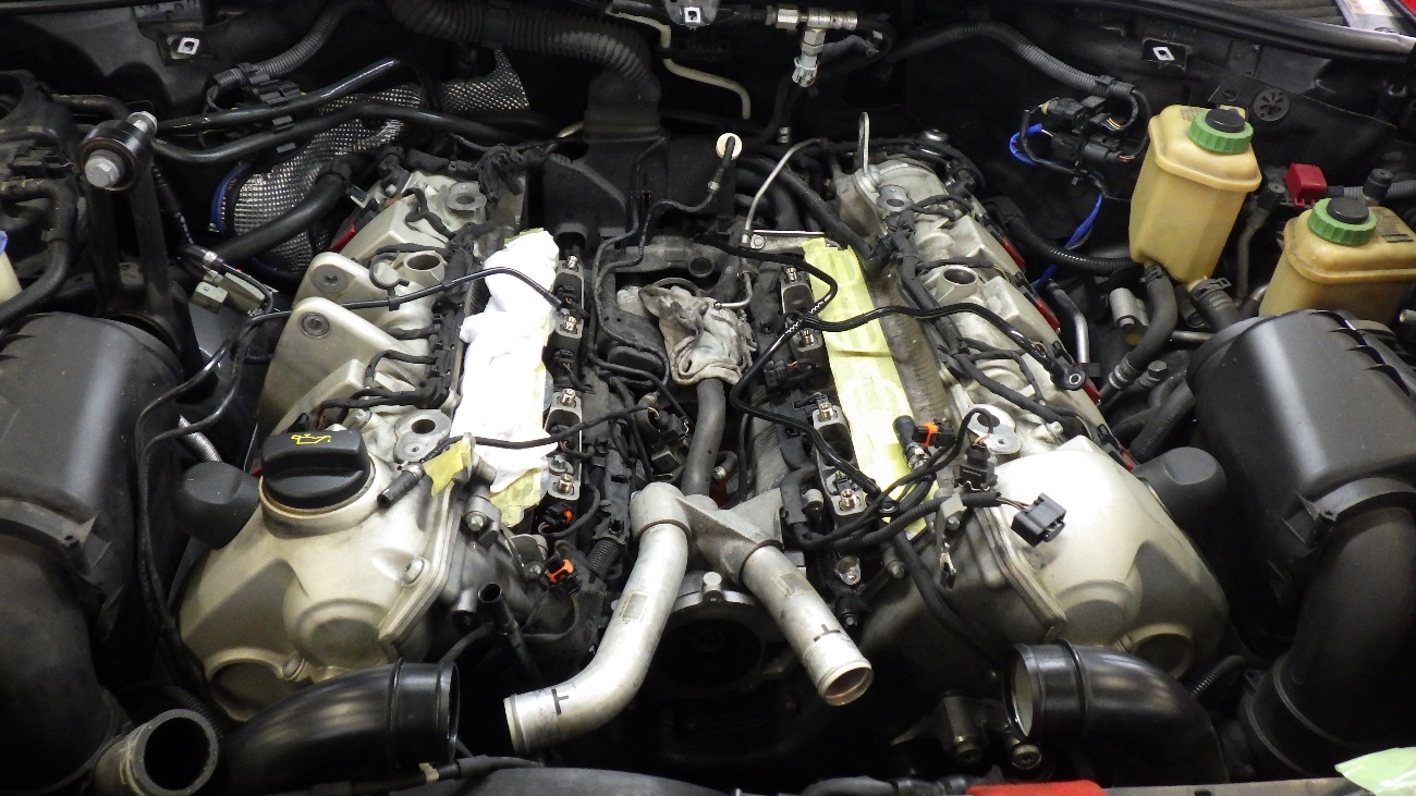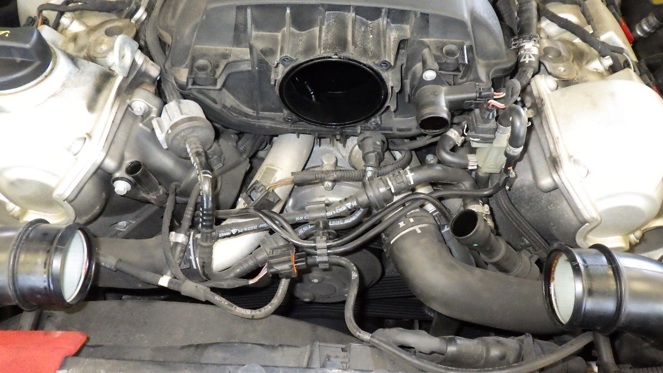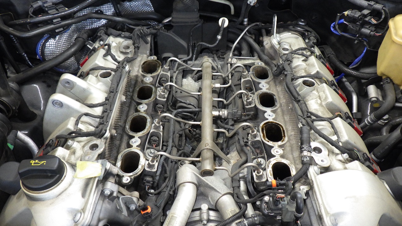 スロットルボディ、各ブローバイホースを取り外した状態になります。