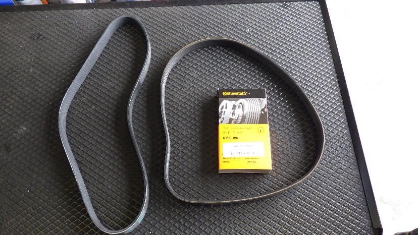 (写真中央、白地で字の書いてある部分がドライブベルトです)