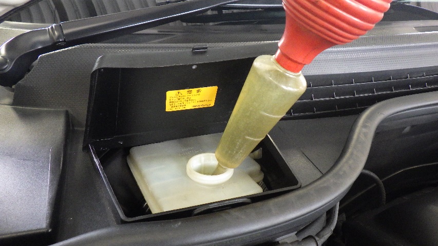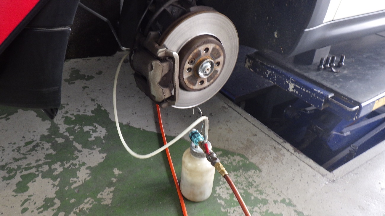 ブレーキフルード交換作業中の写真です。